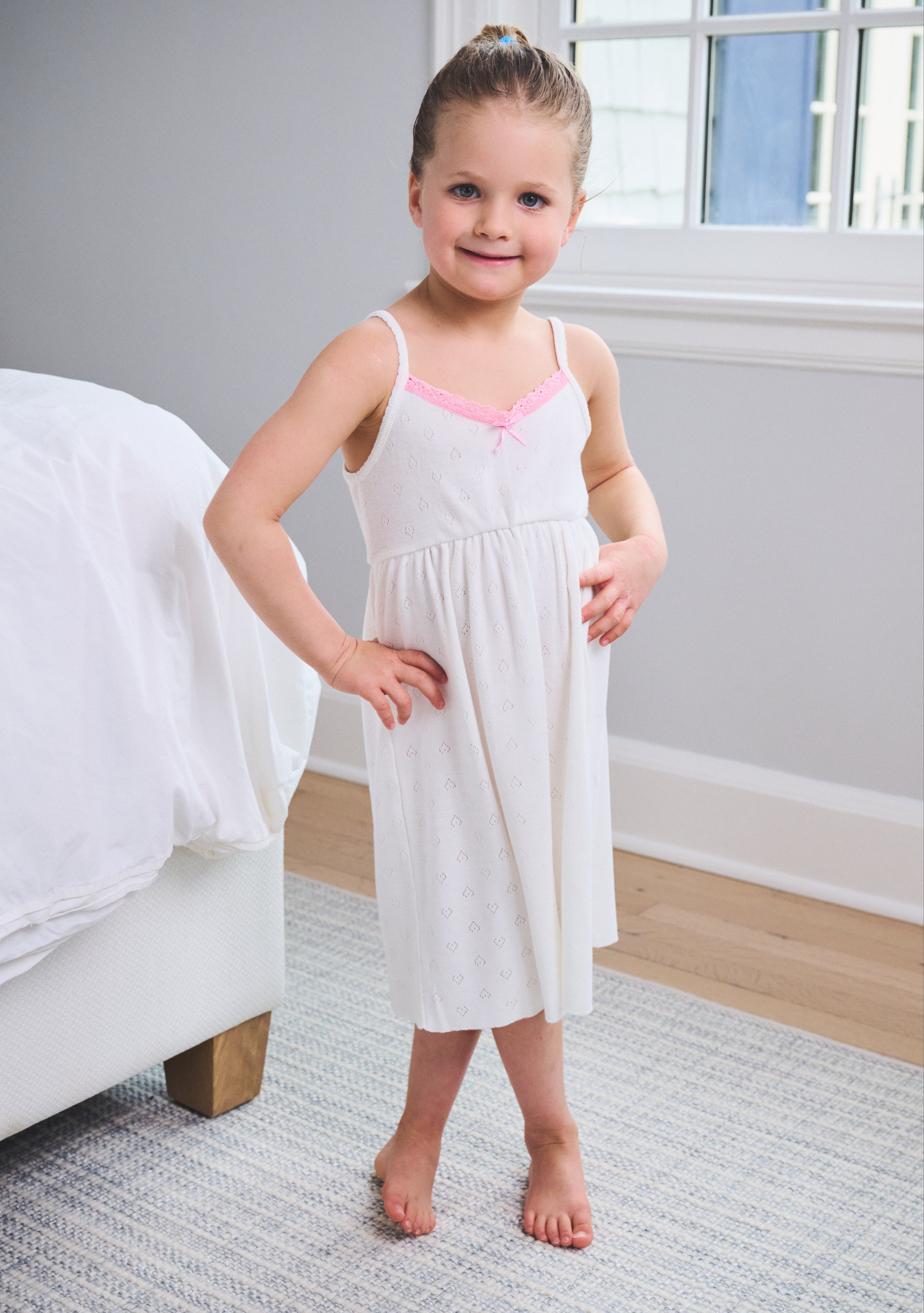 Girls Babydoll Gown - Pearl White Hearts Pointelle